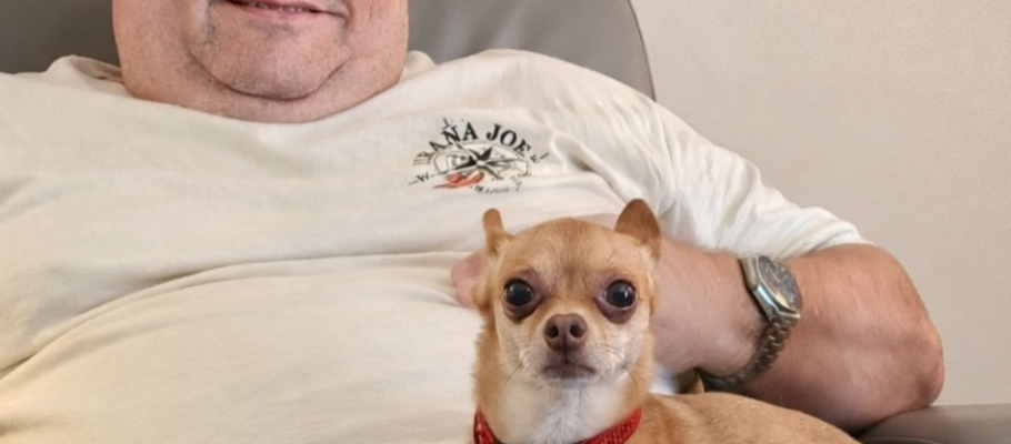 Noni, nka Tony, is home! This special little guy has been adopted and is settling in with his wonderful, recently retired parents who had just said goodbye to their beloved Chihuahua girl, Piper, last month. They knew they were ready to rescue another Chi in need. Experienced with the breed (and their spicy personalities!), they weren’t fazed by Noni’s sometimes reactive nature. He’s already claimed his favorite spot, curled up happily in his dad’s lap. With a big, gentle canine brother named Rex and three kitty siblings, Noni is cherished and living his very best life.