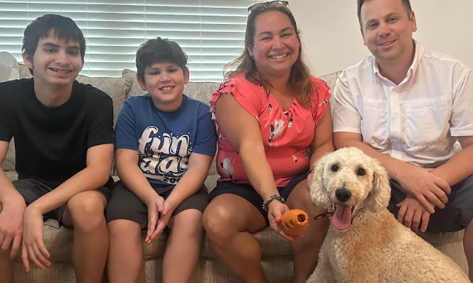 The Garner family knew their hearts were ready to welcome a dog—and when they saw Roxie online, they instantly felt the connection. An adult, medium-sized Goldendoodle was exactly what they were hoping for, and Roxie’s sweet, playful personality sealed the deal. “She’s so smart and just perfect for us,” they said. With experience training high-energy dogs, and both working from home, the Garners are able to give Roxie the attention, activity, and love she deserves. Surrounded by a strong support system of family, friends, and neighbors, Roxie will never spend much time alone. Welcome home Roxie!