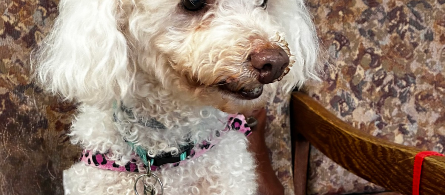 Tinkerbell is a 14 year old Maltese Poodle mix whose elderly owner reached out desperate for help as they were about to undergo major surgery and had no one to care for Tinkerbell. Tinkerbell has some health issues of her own, experiencing frequent and seemingly uncontrollable urination. We are happy to be able to step in and give this girl the care she needs.